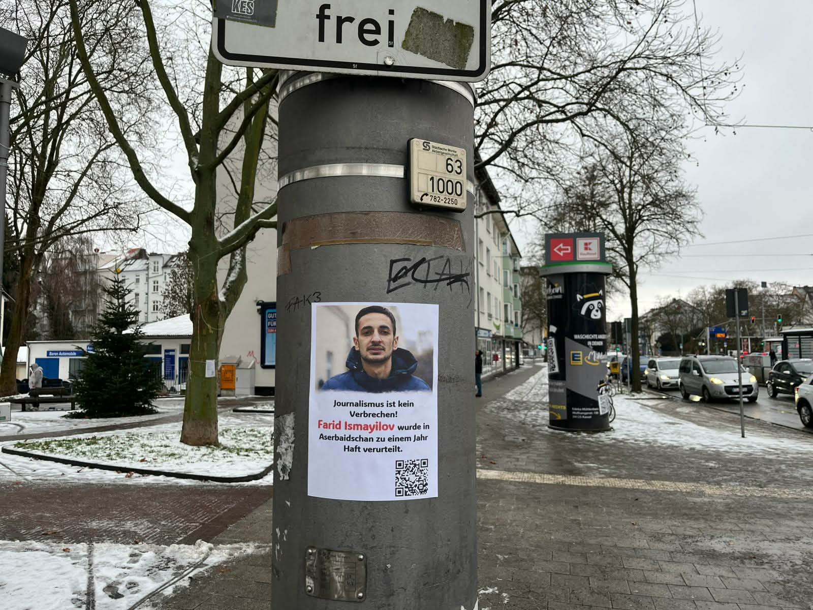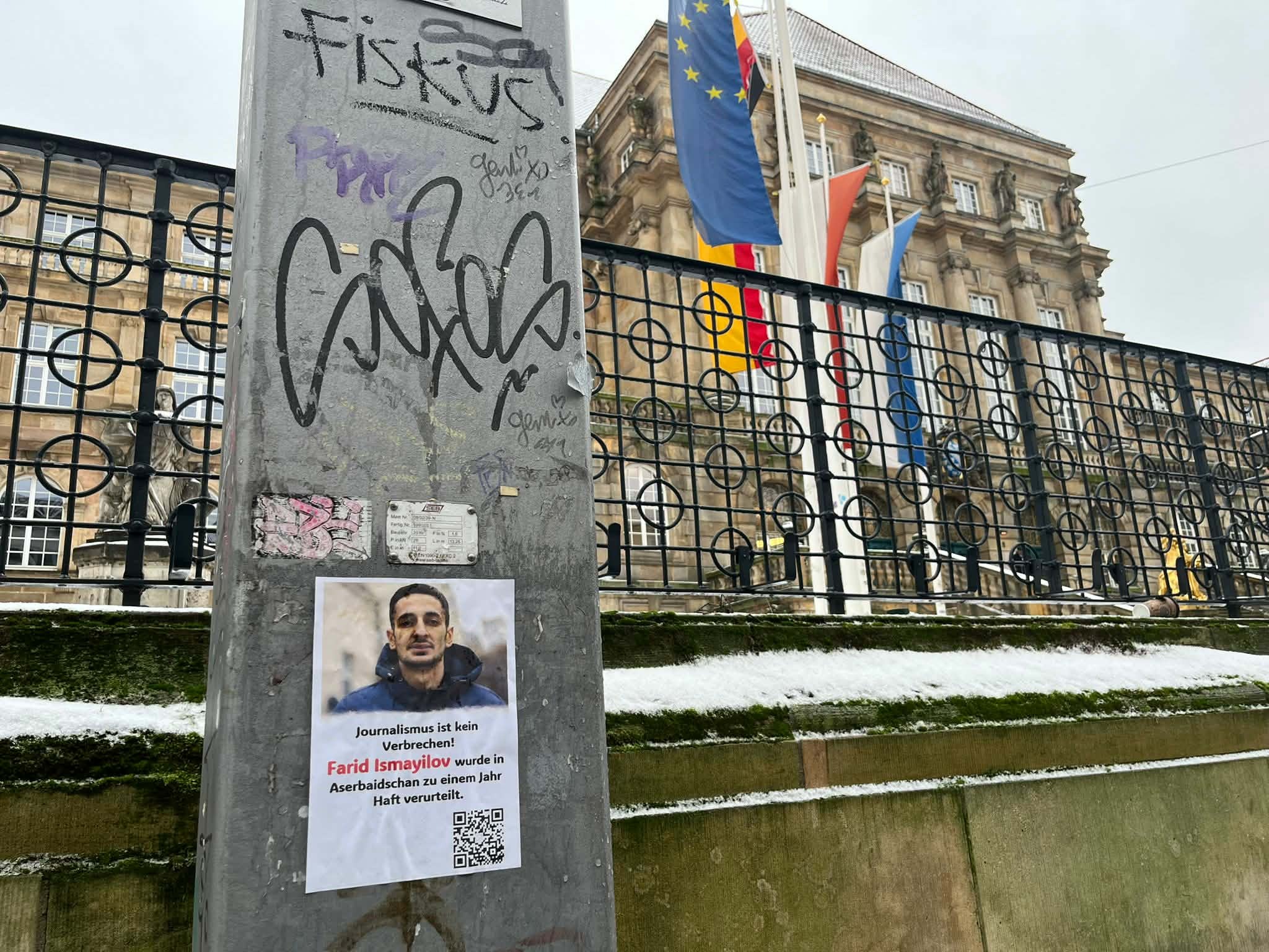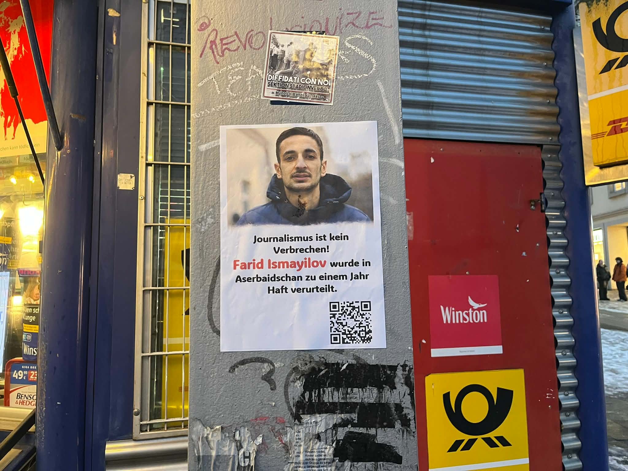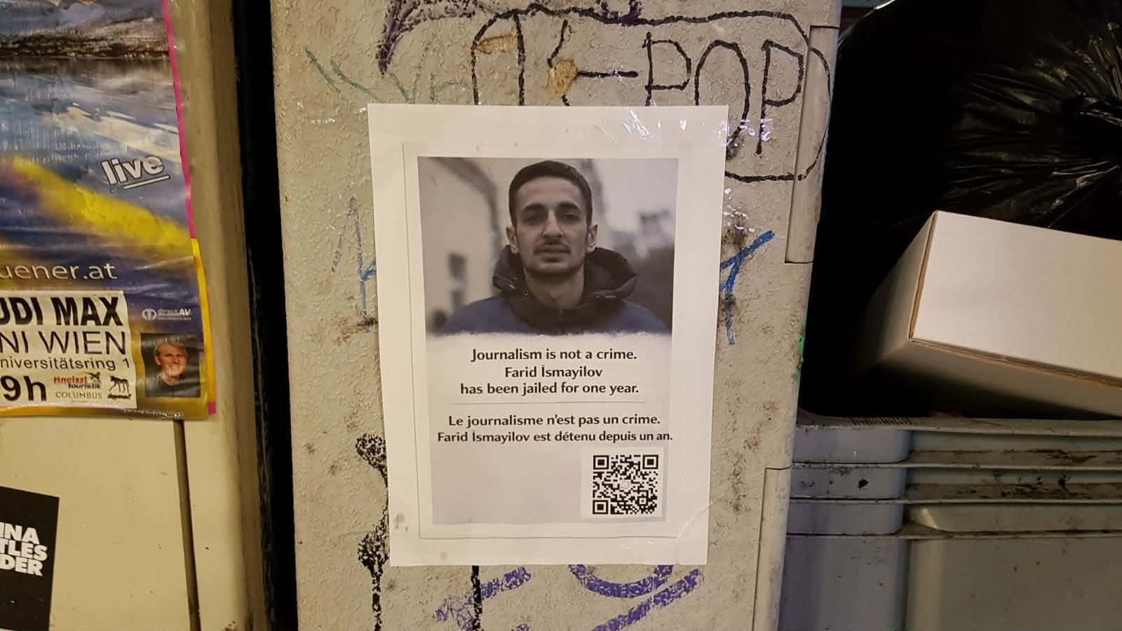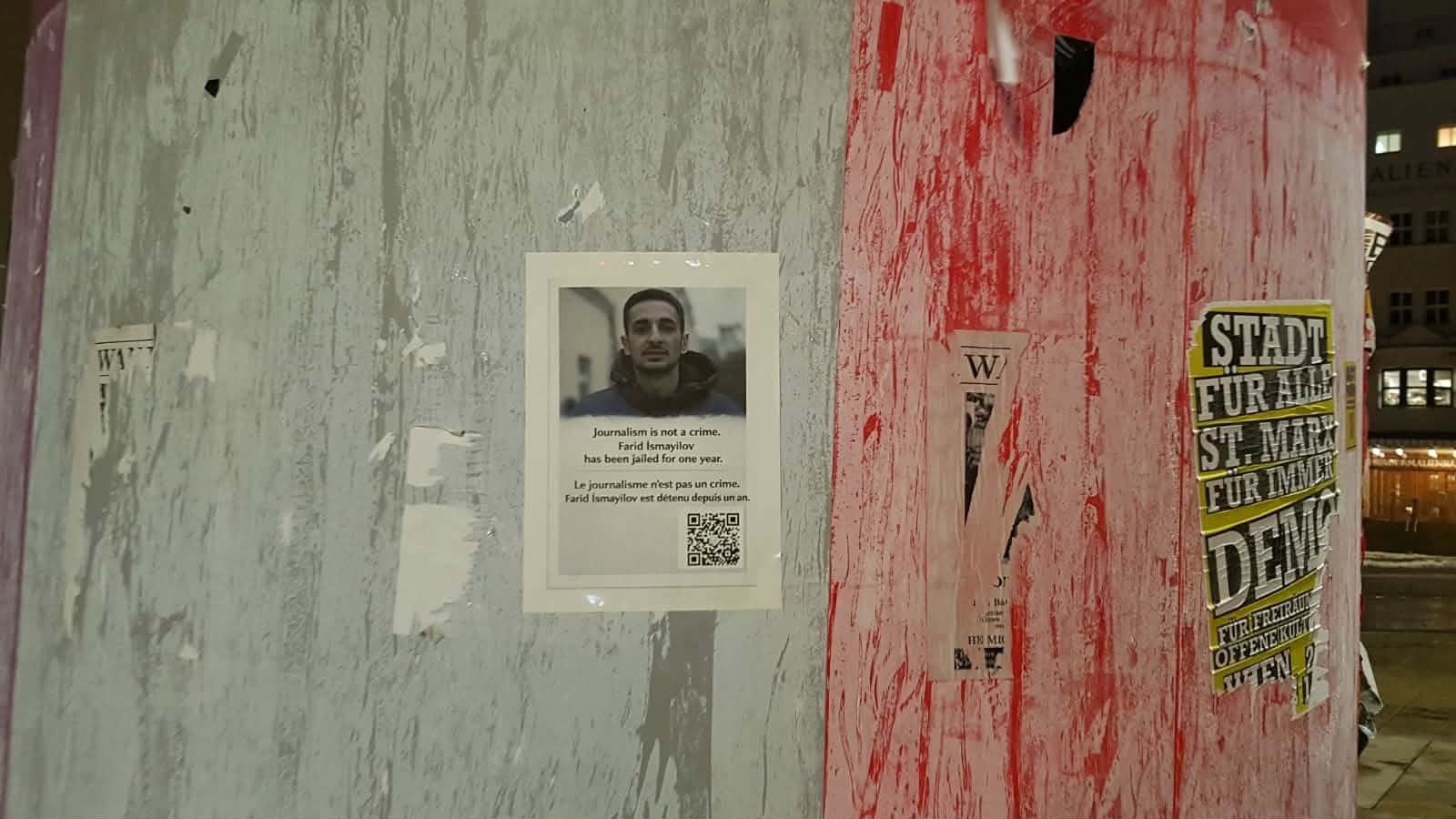 Son iki həftədə Avropa Birliyinin bir neçə ölkəsində – Paris, Rennes, Kassel kimi böyük şəhərlərində həbsdə olan azərbaycanlı jurnalist Fərid İsmayılovun portreti əks olunan plakatlar ictimai məkanlarda yerləşdirilib. Kampaniya onun Azərbaycanda həbs edilməsindən bir il keçməsi münasibətilə təşkil olunub.